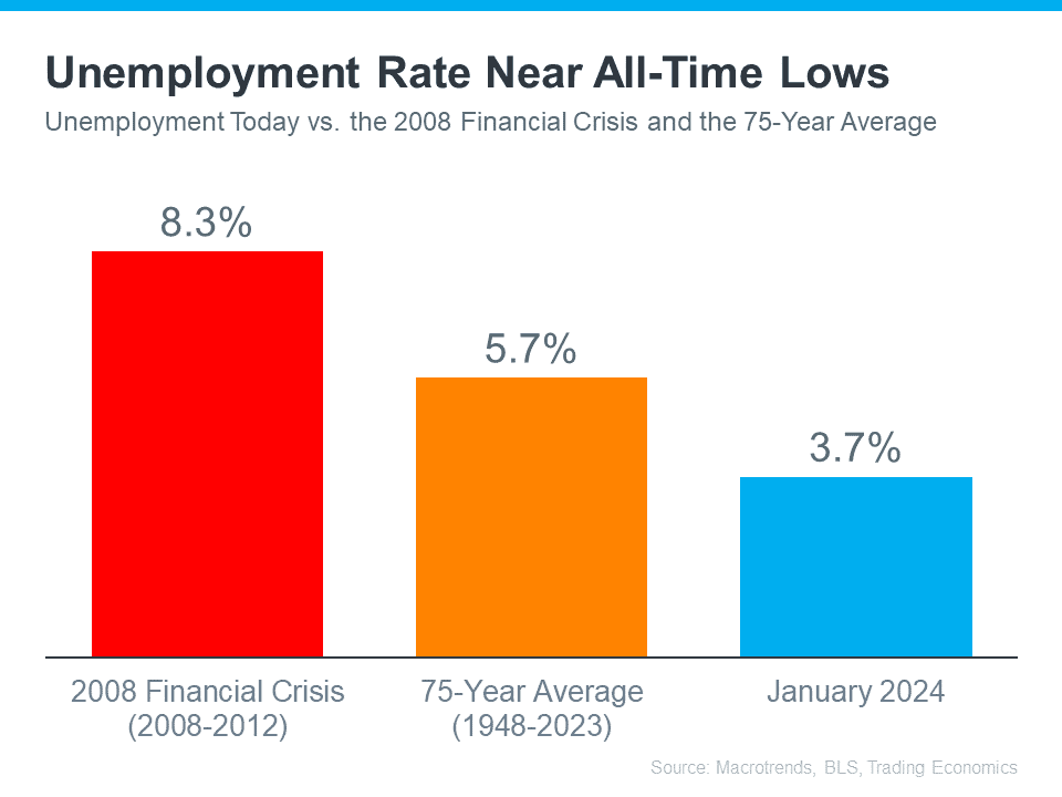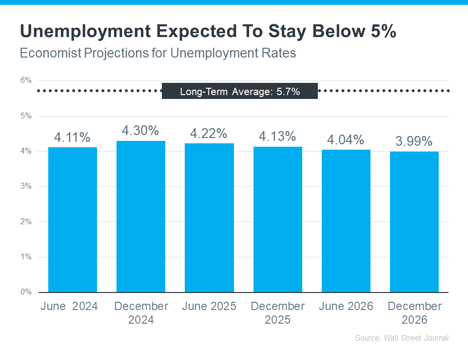 Looking ahead, projections show the unemployment rate will likely stay below the 75-year average. That means you shouldn’t expect a wave of foreclosures that would impact the housing market in a big way.
